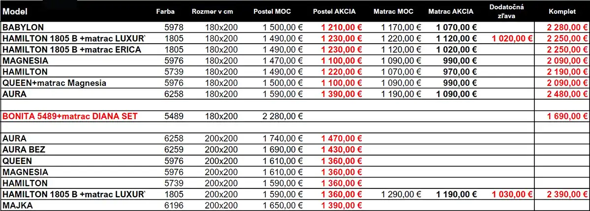 Rozmery: 160×200, 180×200, 200×200 cm