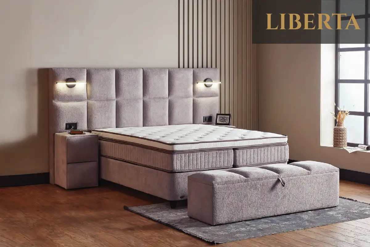 Liberta definuje novú úroveň pohodlia a funkčného dizajnu vo vašej spálni. Na prvý pohľad zaujme svojím dominantným, extra širokým čelom a poťahom z modernej, štruktúrovanej látky buklé. Posteľ je vybavená integrovanými svietidlami a praktickými zásuvkami, ktoré oceníte pri večernom oddychu. Všetko, čo potrebujete pre moderný interiér, nájdete v tomto jedinom kúsku postele. Rozmery: 160×200, 180×200 cm