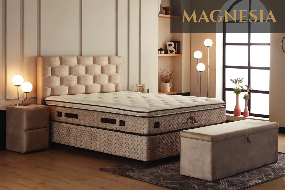 Magnesia predstavuje revolučný prístup k odpočinku vďaka unikátnemu matracu s obsahom prírodných magnetických minerálov z pohoria Spil v Turecku. Tieto vzácne zložky sú vyhľadávané pre svoje terapeutické vlastnosti, ktoré napomáhajú lepšej cirkulácii krvi a hĺbkovej regenerácii organizmu počas noci. Spojenie inovatívnej magnetoterapie a moderného vizuálu prináša nielen štýlový kúsok do spálne, ale predovšetkým prirodzenú podporu zdravia.. Rozmery: 90×200, 120×200, 140×200, 160×200, 180×200 cm