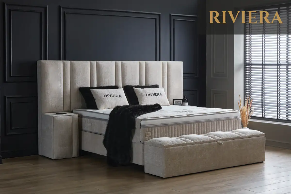 Riviera vyniká extra širokým čelom s čalúnením v elegantnom odtieni, ktorého čisté línie a jemne nápaditý dizajn si okamžite získavajú priazeň aj tých najnáročnejších zákazníkov. Táto posteľ nie je len vizuálnym stredobodom spálne – je predovšetkým miestom dokonalého oddychu.