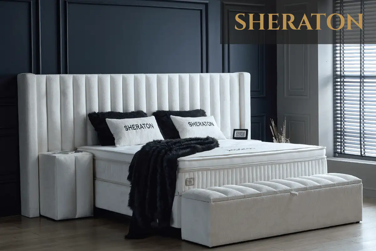 Posteľ Sheraton predstavuje dokonalú harmóniu luxusného dizajnu, praktickosti a maximálneho pohodlia. Dominantou postele je výrazné čelo vyskladané z elegantných čalúnených panelov, ktoré v čistom bielom prevedení pôsobí mimoriadne moderne. Ak hľadáte kúsok, ktorý spojí funkčnosť s atmosférou prémiového interiéru, Sheraton je tou správnou odpoveďou. Rozmery: 160×200, 180×200, 200×200 cm