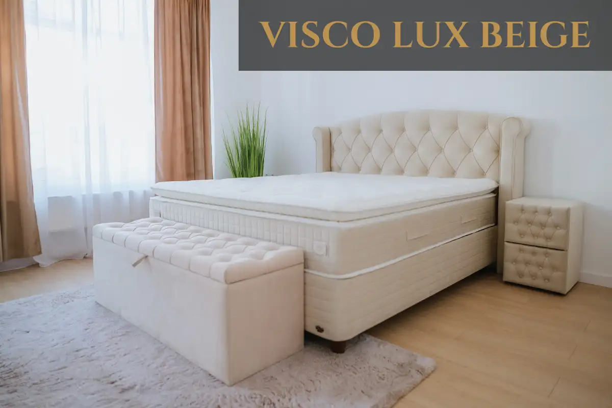 Béžová posteľ Visco Lux Beige vnáša do spálne upokojujúcu ľahkosť a eleganciu, ktorú si zamilujete na prvý dotyk. V kombinácii s taštičkovým matracom a topperom z HR peny vytvára dokonalé útočisko pre váš oddych. Prémiové materiály a jemné línie tohto modelu potešia zmysly aj oko každého milovníka kvality. Rozmery: 90×200, 120×200, 140×200, 160×200, 180×200 cm